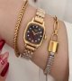 ساعت مچی زنانه تیسوت TISSOTبند استیل طلایی صفحه مربعی مشکی+باطری اضافی کد 9427