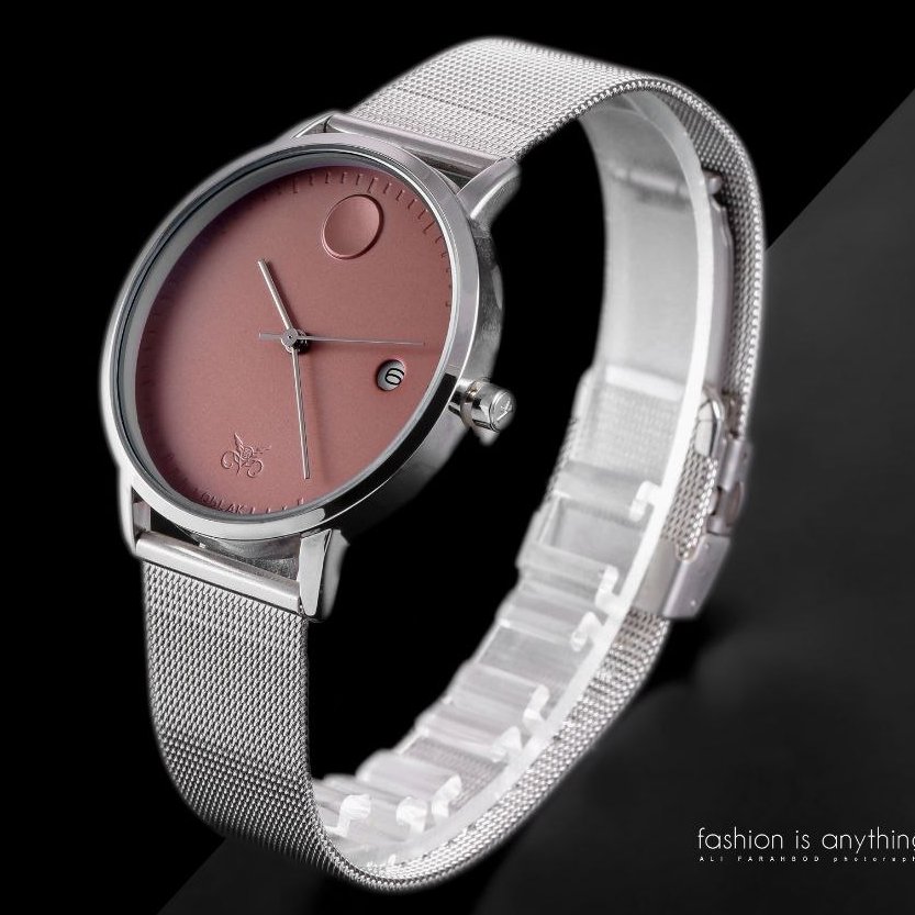 ساعت مچی مردانه حصیری ساده جذاب یک سال گارانتی بند استیل صفحه نمایش گرد صورتی+باطری اضافی کد9433