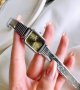 ساعت مچی زنانه  بند استیل نقره ایی قفل ریلی طرح یونانی زنونه ایکس وی Xsvo صفحه نمایش مستطیلی بنفش+باطری اضافی کد9494