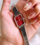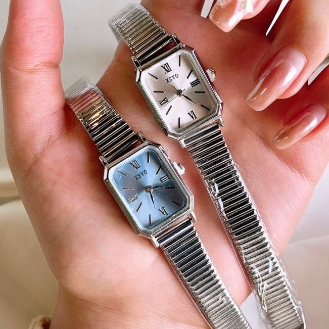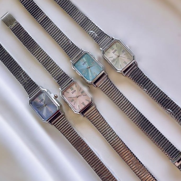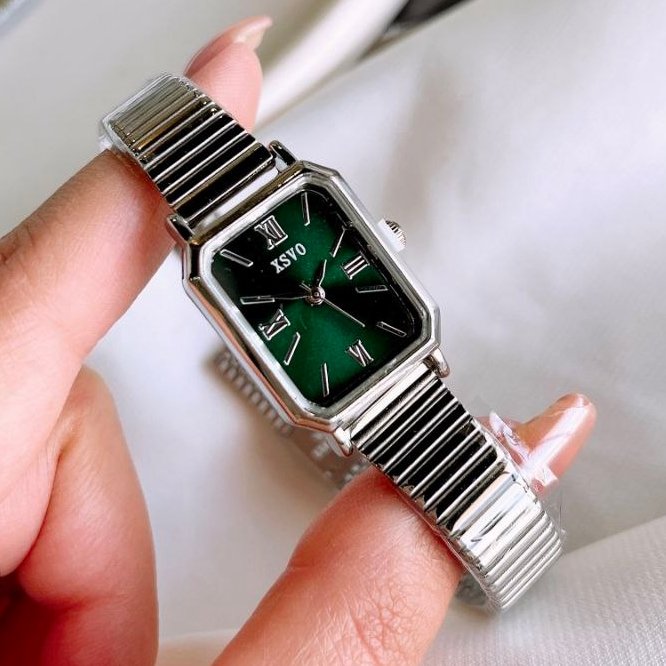 ساعت مچی زنانه بند استیل نقره ایی قفل ریلی طرح یونانی زنونه ایکس وی Xsvo صفحه نمایش مستطیلی سبز تیره+باطری اضافی کد9497