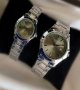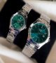 - ساعت ست و تکی زنانه و مردانه عقربه ای کاسیو CASIO صفحه گرد سبز بند استیل نقره ایی - تک+باطری اضافی کد 9505