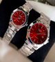 - ساعت ست و تکی زنانه و مردانه عقربه ای کاسیو CASIO صفحه گرد سبز زیتونی بند استیل نقره ایی - تک+باطری اضافی کد 9508