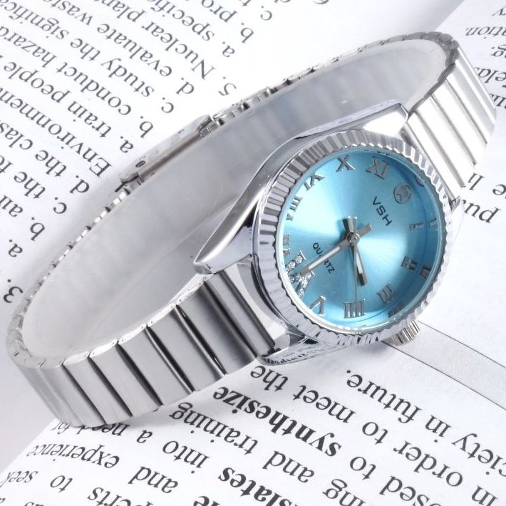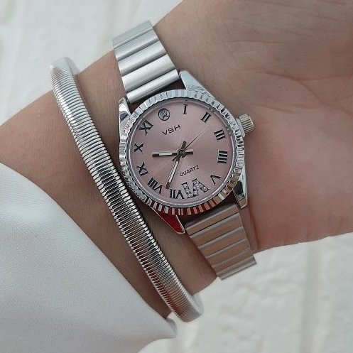 - ساعت مچی زنانه Vsh بند استیل نقره ایی ریلی صفحه نمایش گرد ابی+باطری اضافی کد9514