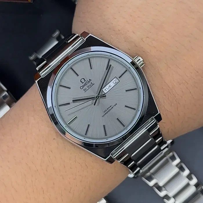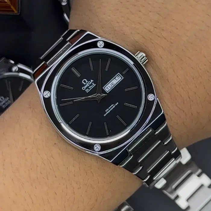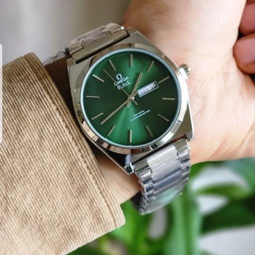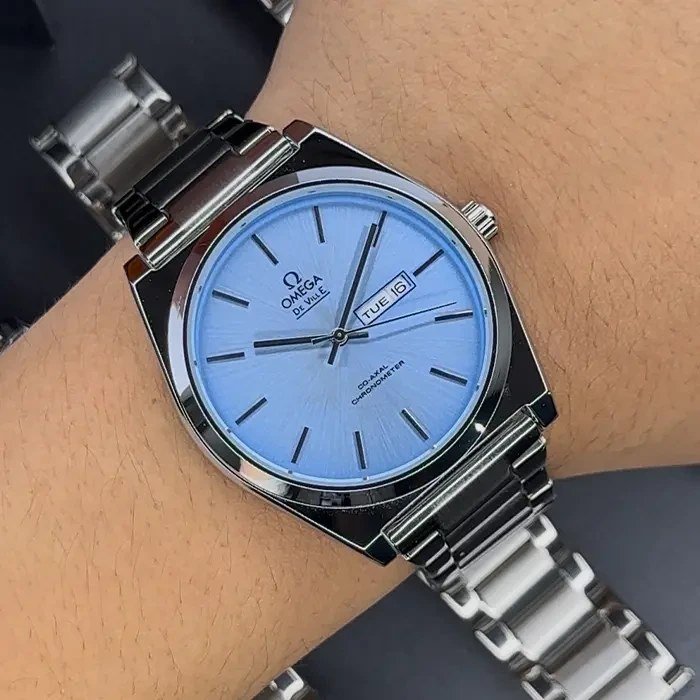 ساعت مچی مردانه امگا OMEGA طرح کلاسیک دو تقویم بند استیل نقره ایی صفحه نمایش آبی+باطری اضافی کد 9526