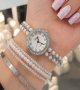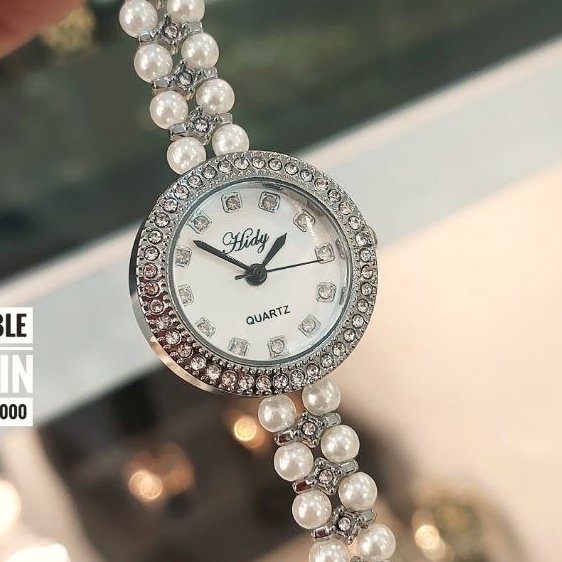 - ساعت مچی زنانه مرواریدی هایدیHidy دور نگین نقره ایی مجلسی شیک و خاص+باطری اضافی کد9594