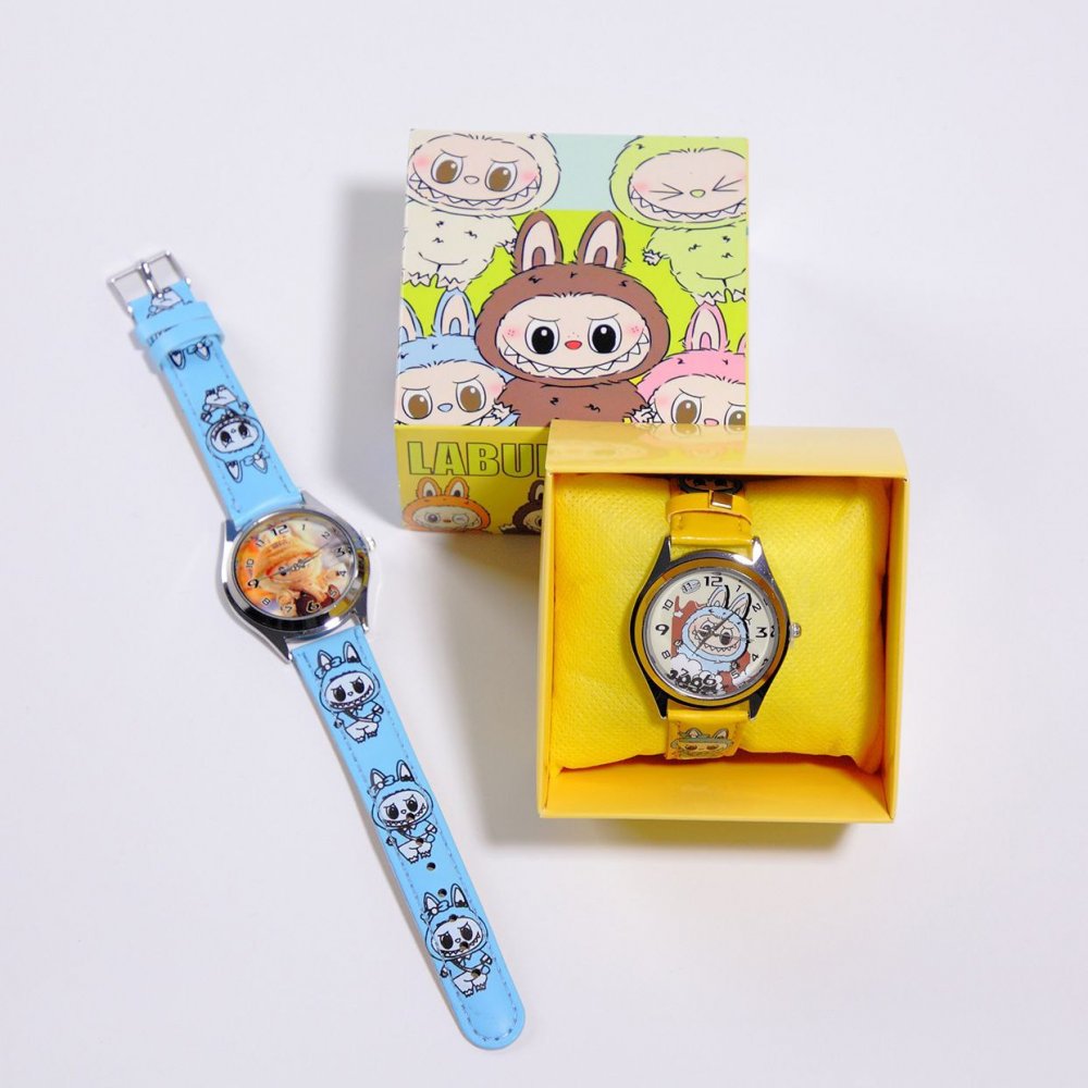 - ساعت مچی بچگانه انیمیشنی بند چرم عروسکی زرد+باطری اضافی کد 9627