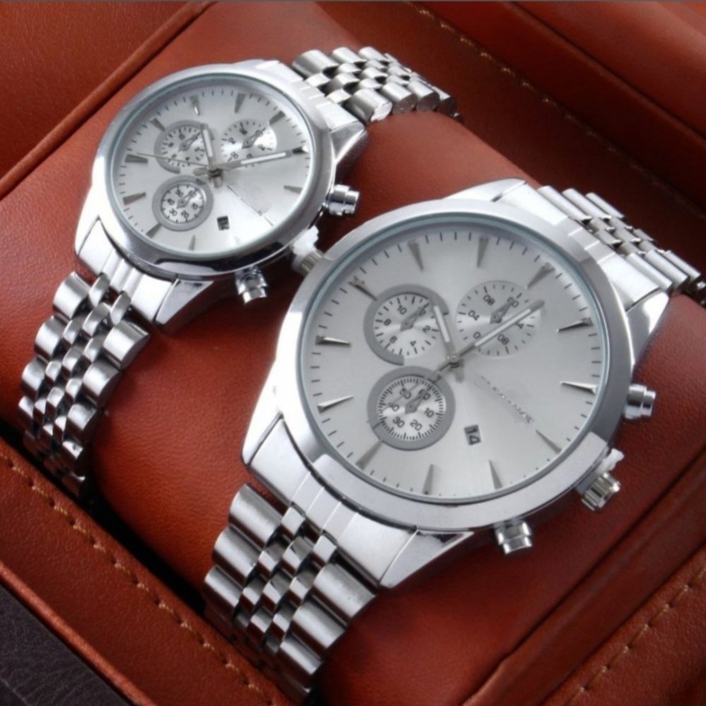 - ست ساعت مچی زنانه و مردانه برند سیتیزن citizen - صفحه سفید بند استیل نقره ای+باطری اضافی کد9652