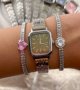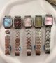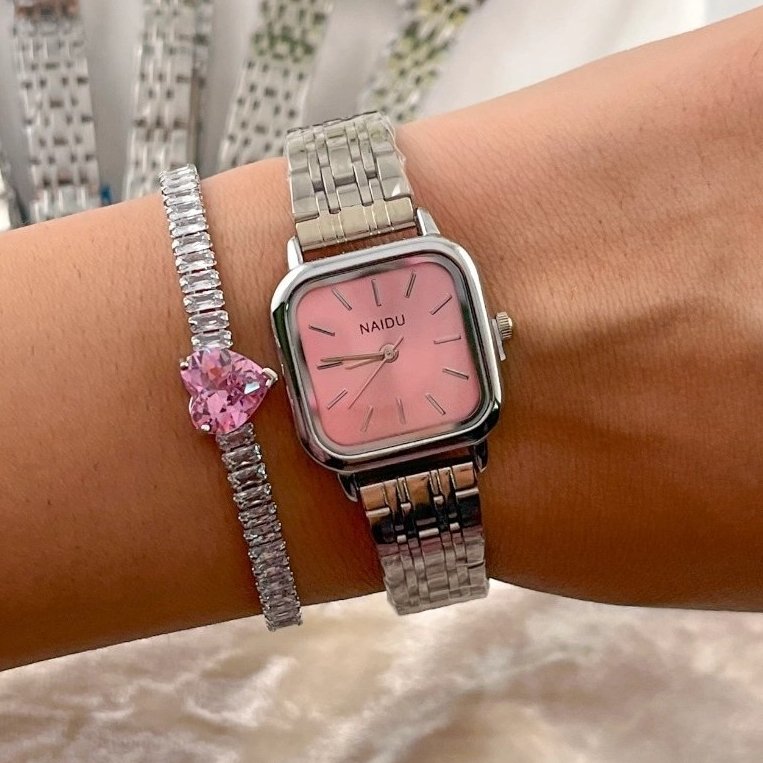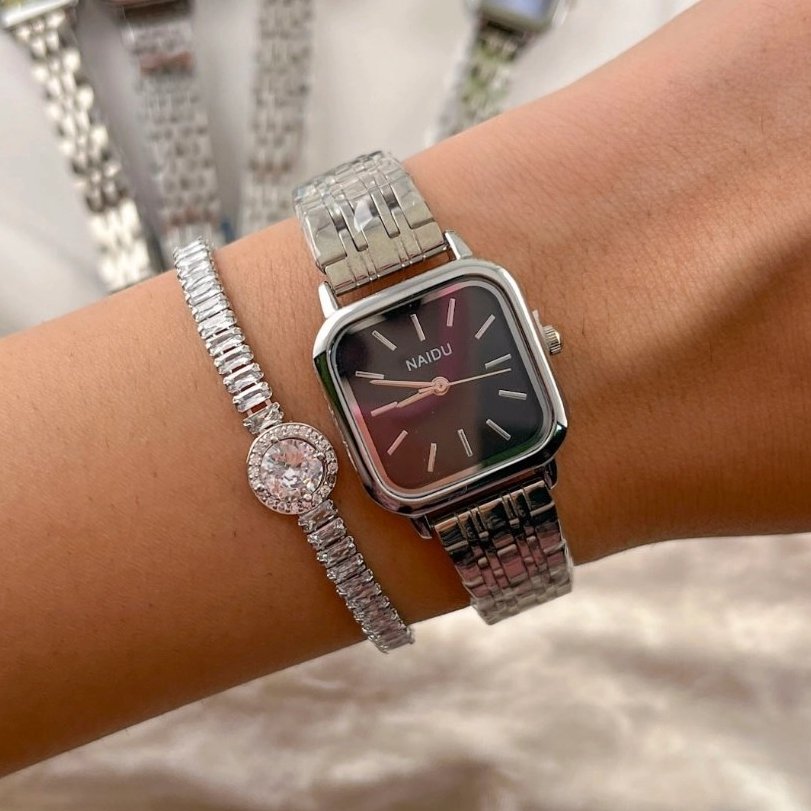 - ساعت مچی زنانه نایدو NAIDU بند حصیری استیل نقره ایی مدل صفحه مربعی ابی+باطری اضافی کد 9685