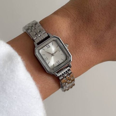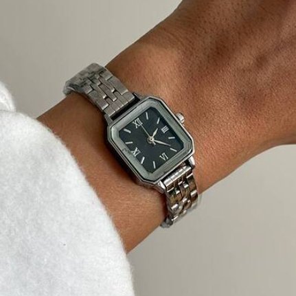 - ساعت مچی زنانه و دخترانه نایدو NAIDU بند حصیری استیل نقره ایی مینیمال مستطیلی سبز+باطری اضافی کد9701