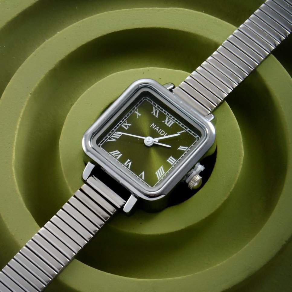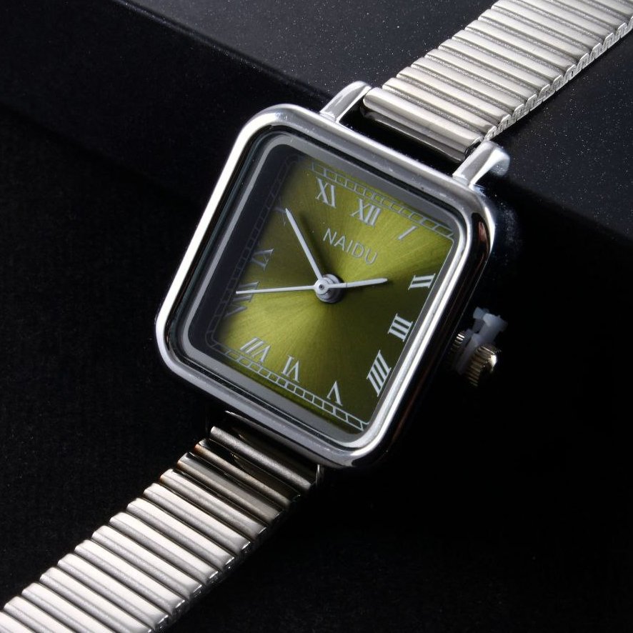 - ساعت مچی زنانه بند استیل کرکره ایی نایدو naidu مربعی سبز شیک (ریلی )+باطری اضافی کد 9724