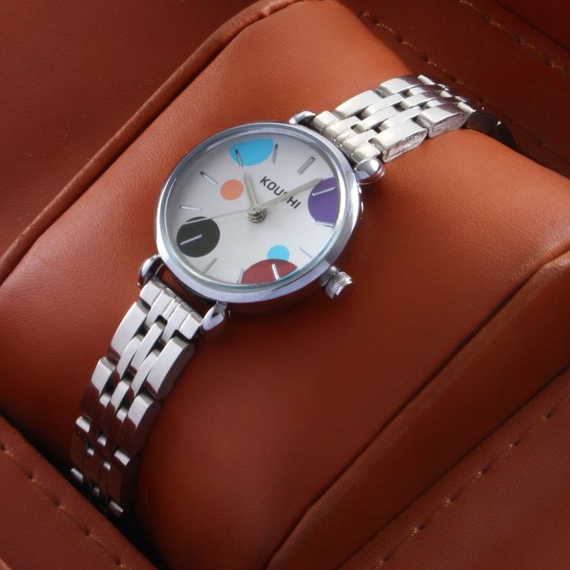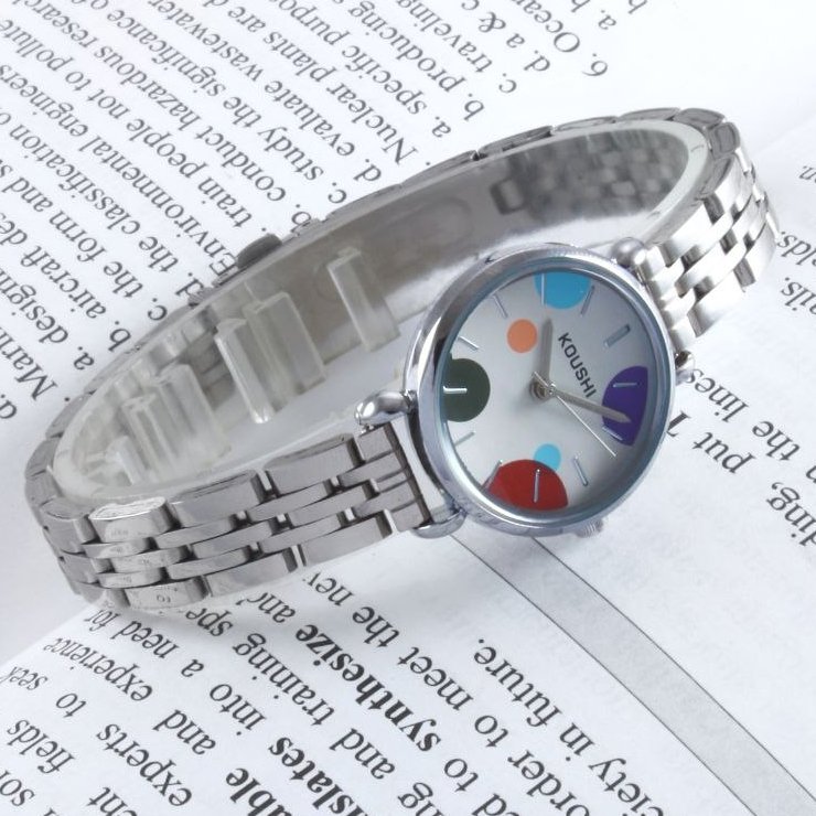 - ساعت مچی زنانه کوشی koushi بند استیل نقره ای صغحه نمایش رنگی جدید+باطری اضافی کد 9750