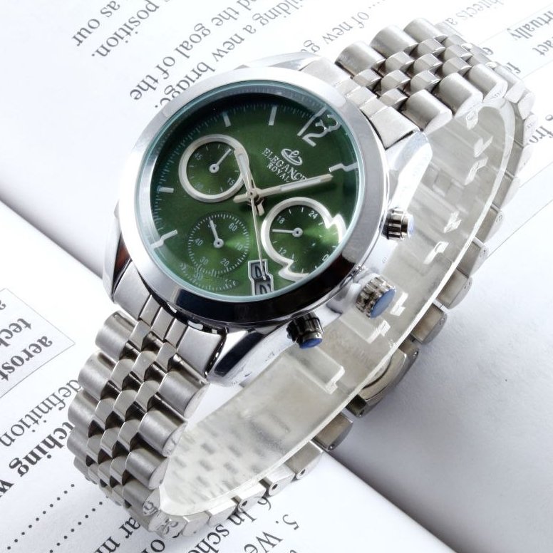 ساعت مچی زنانه الگانس Elegance بند استیل نقره ایی صفحه نمایش سبز زیبا و شیک+باطری اضافی کد9757
