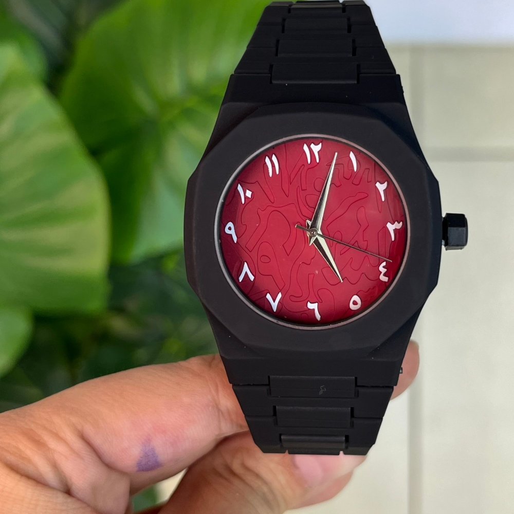 ساعت مچی مردانه بند استیل مشکی با طراحی خاص و شیک صفحه نمایش عددی قرمز+باطری اضافی کد 9767