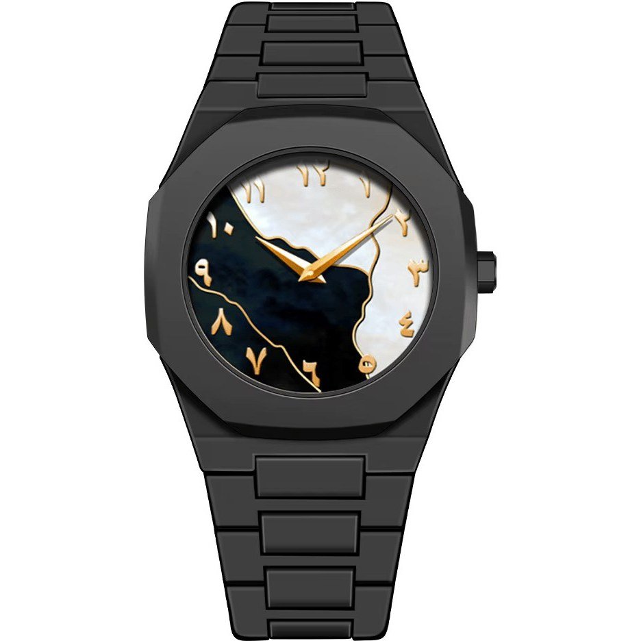 ساعت مچی مردانه  بند استیل مشکی با طراحی خاص و شیک صفحه نمایش عددی سفید+باطری اضافی کد 9769