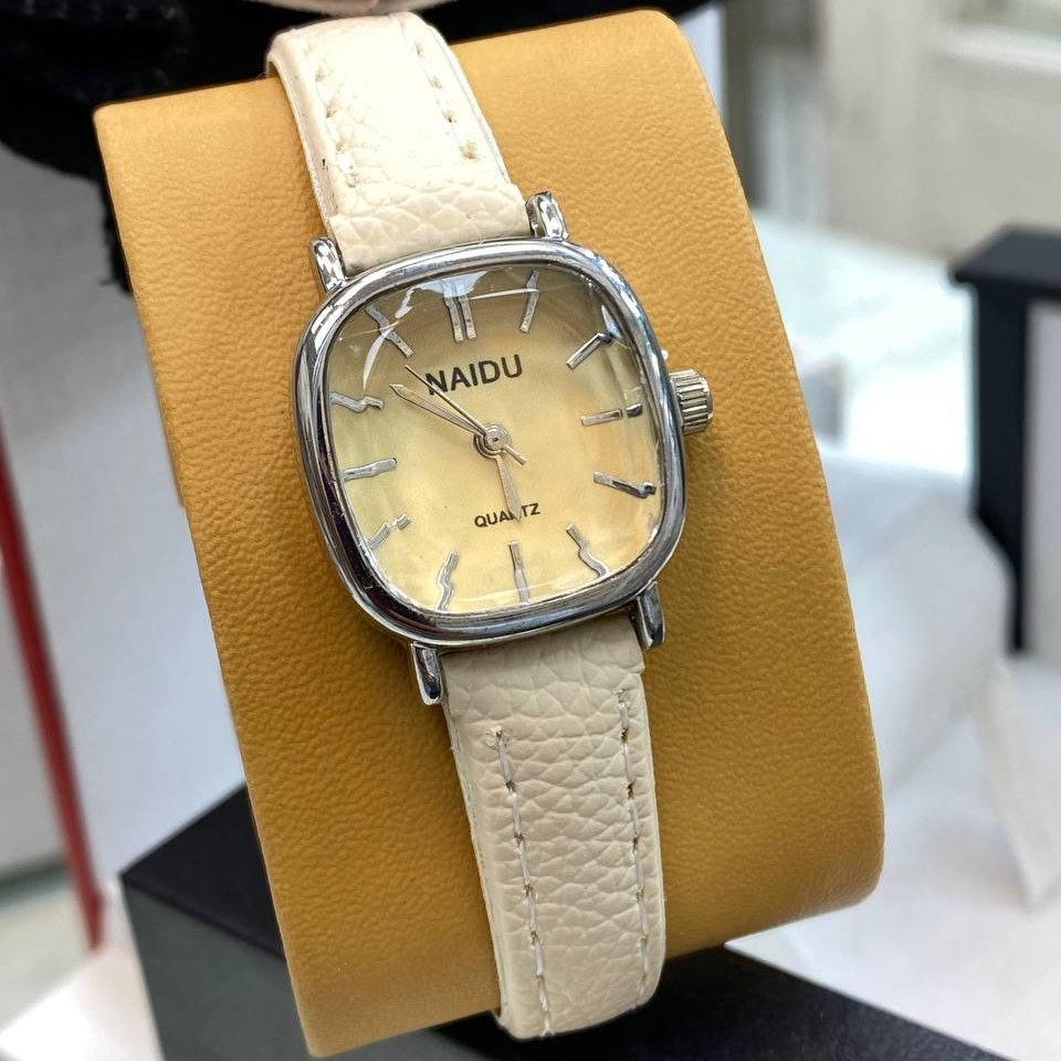 - ساعت مچی زنانه و دخترانه نایدو NAIDU شیشه تراش خورده بند چرمی مینیمال صورتی+باطری اضافی کد9780