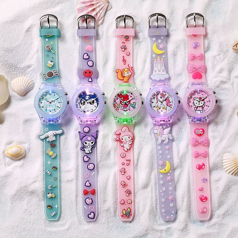 ساعت مچی بچگانه(دخترانه) چراغ دار و شب نما برند lidon عروسکی و فانتزی-کرومی بنفش +باطری اضافی کد 9907