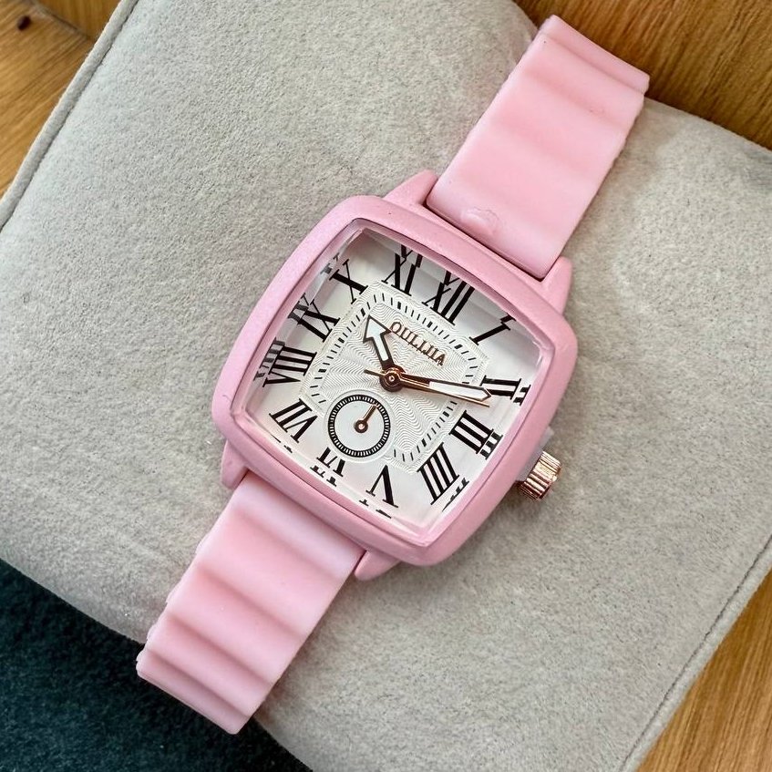 - ساعت مچی دخترانه فانتزی الژیا بند رابر(سیلیکونی) ضدحساسیت مربعی سبز +باطری اضافی کد 9910