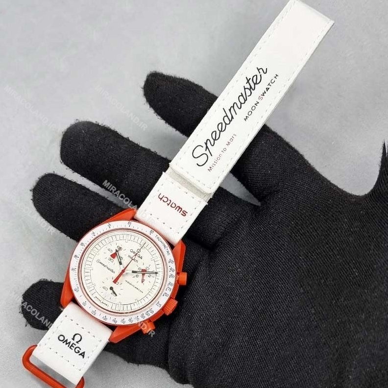 ساعت مچی اسپرت زنانه و مردانه امگا سواچ (ونوس) بند چسبی سفید قاب قرمز +باطری اضافی کد 9930