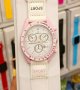 - ساعت مچی اسپرت زنانه و مردانه امگا سواچ (ونوس) بند چسبی سفید قاب قرمز +باطری اضافی کد 9930