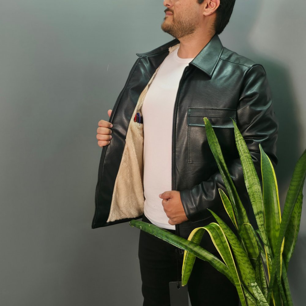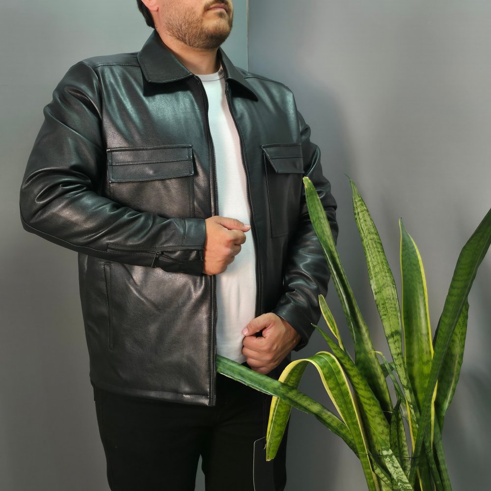 - کاپشن چرم مشکی مردانه طرح 6 جیب مناسب زمستان (داخل خز دار ) کد9980