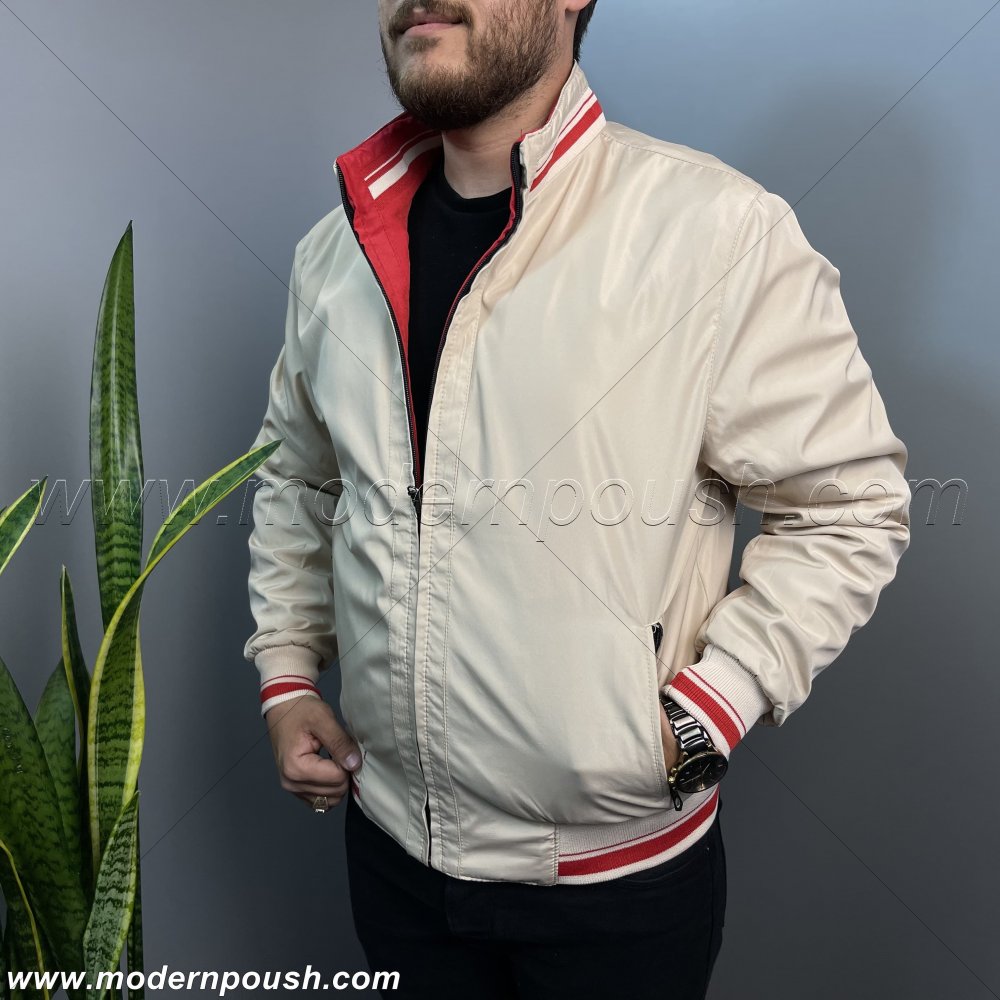 - کاپشن زمستانه دو روی مردانه رنگ کرمی/قرمز یقه پهن کد 12065