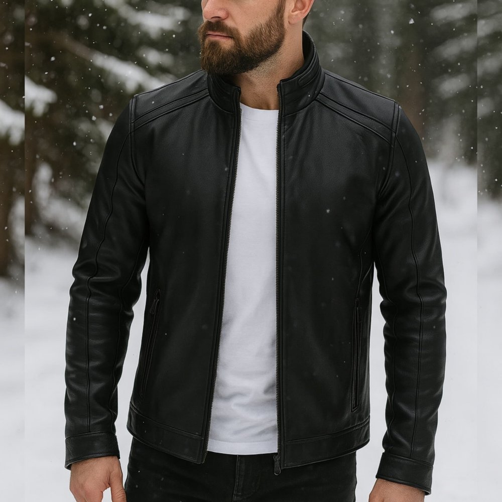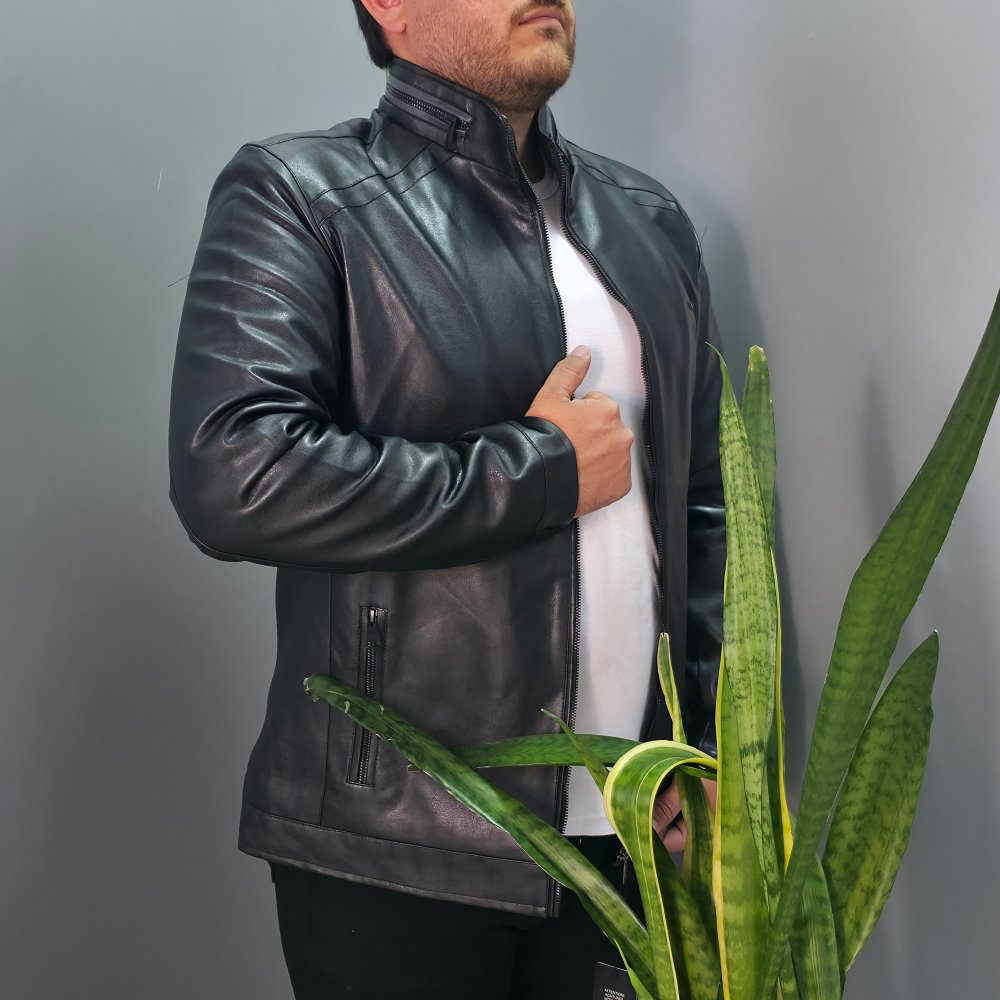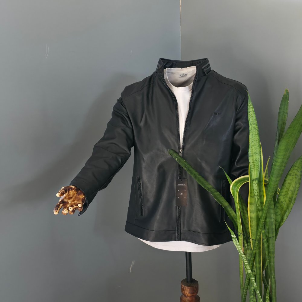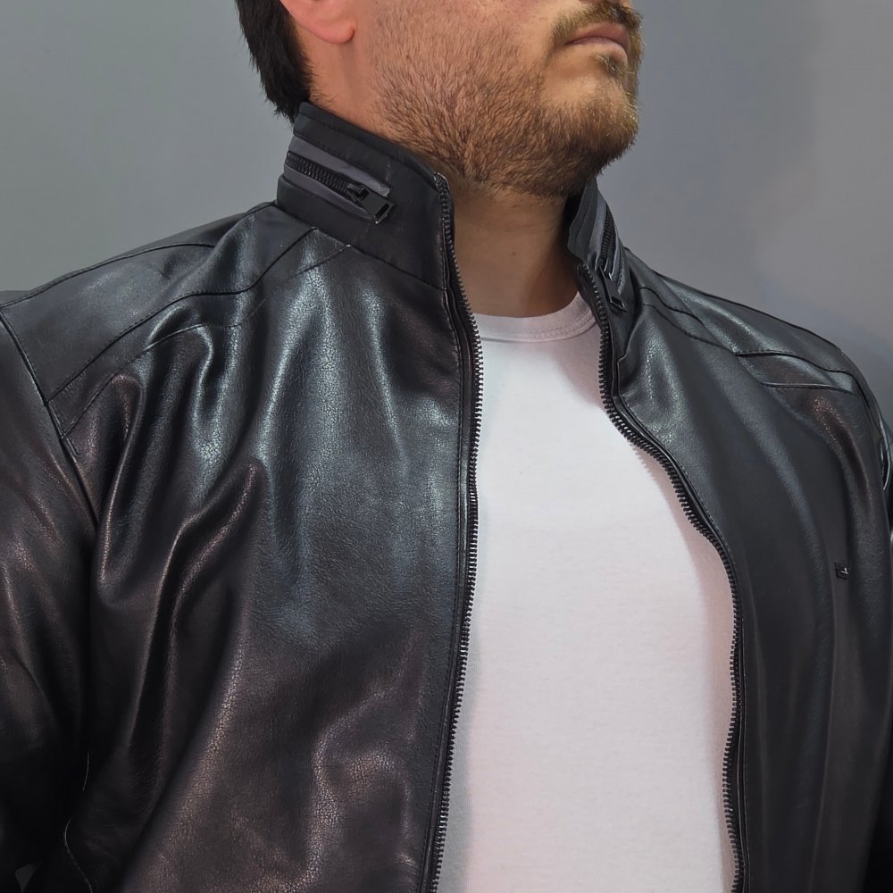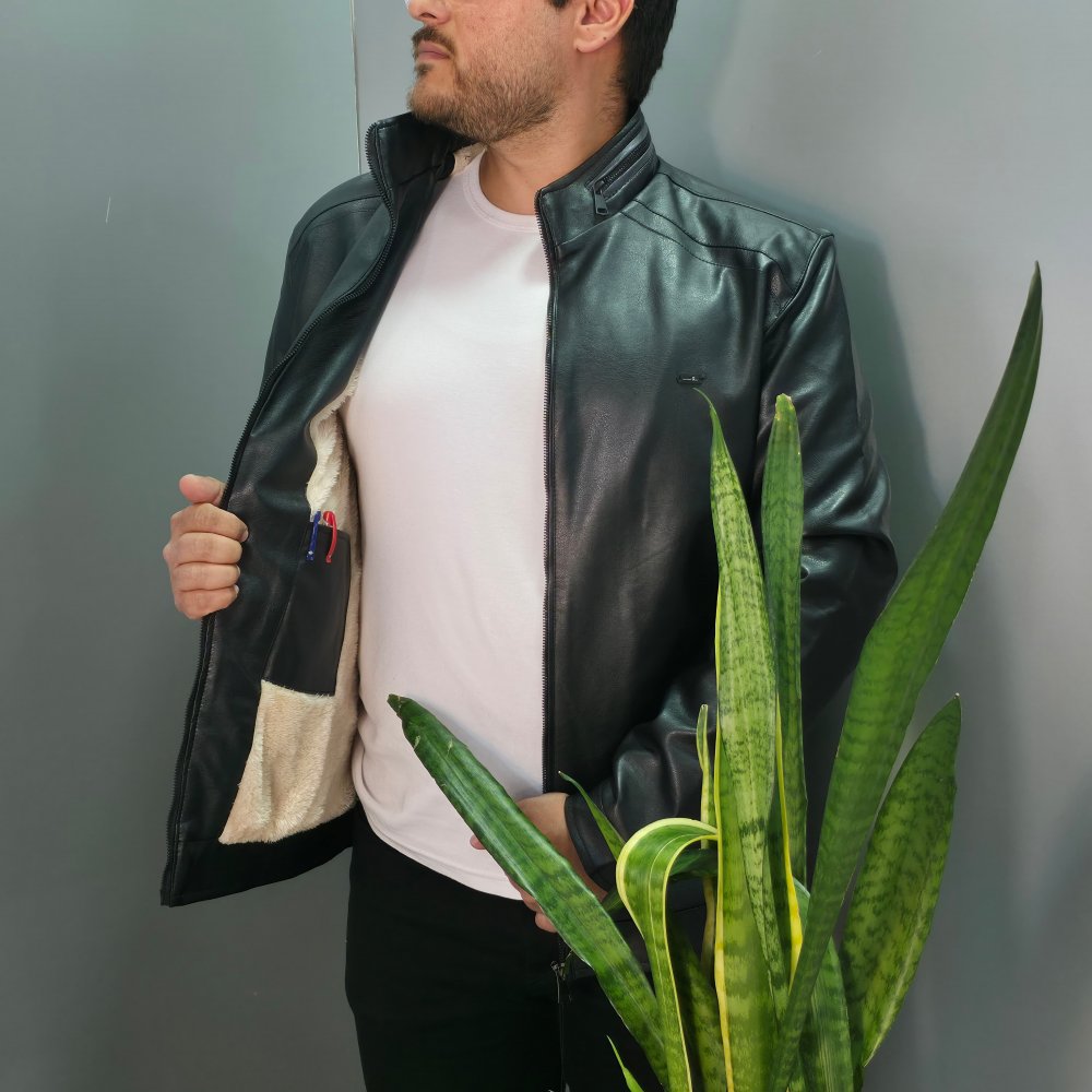 - کاپشن چرم مشکی مردانه طرح یقه زیپ دار مناسب زمستان (داخل خز) جدید کد9987