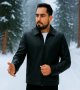 کاپشن چرم مشکی مردانه طرح یقه شکاری مناسب زمستان (داخل پشم شیشه دار ) کد9990