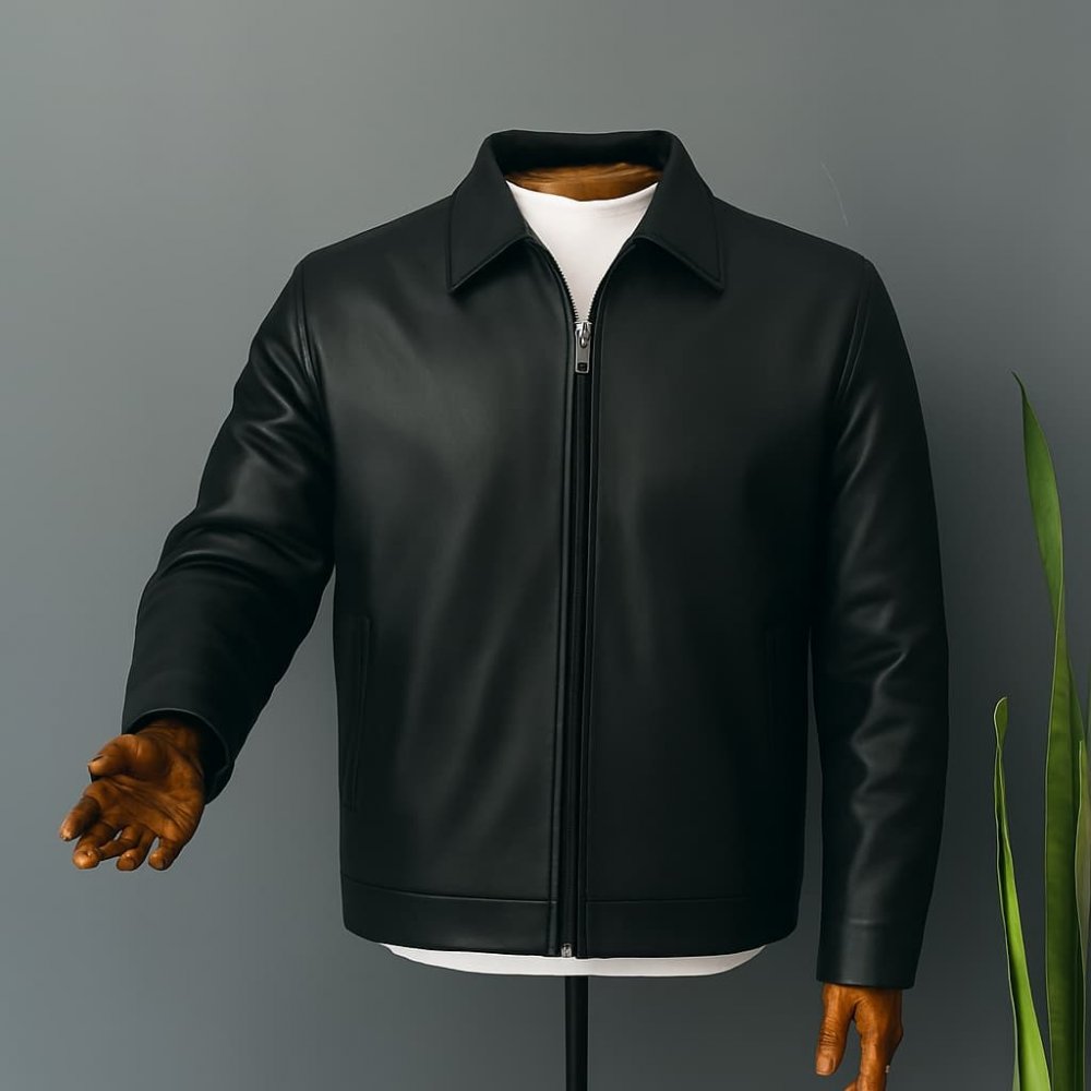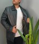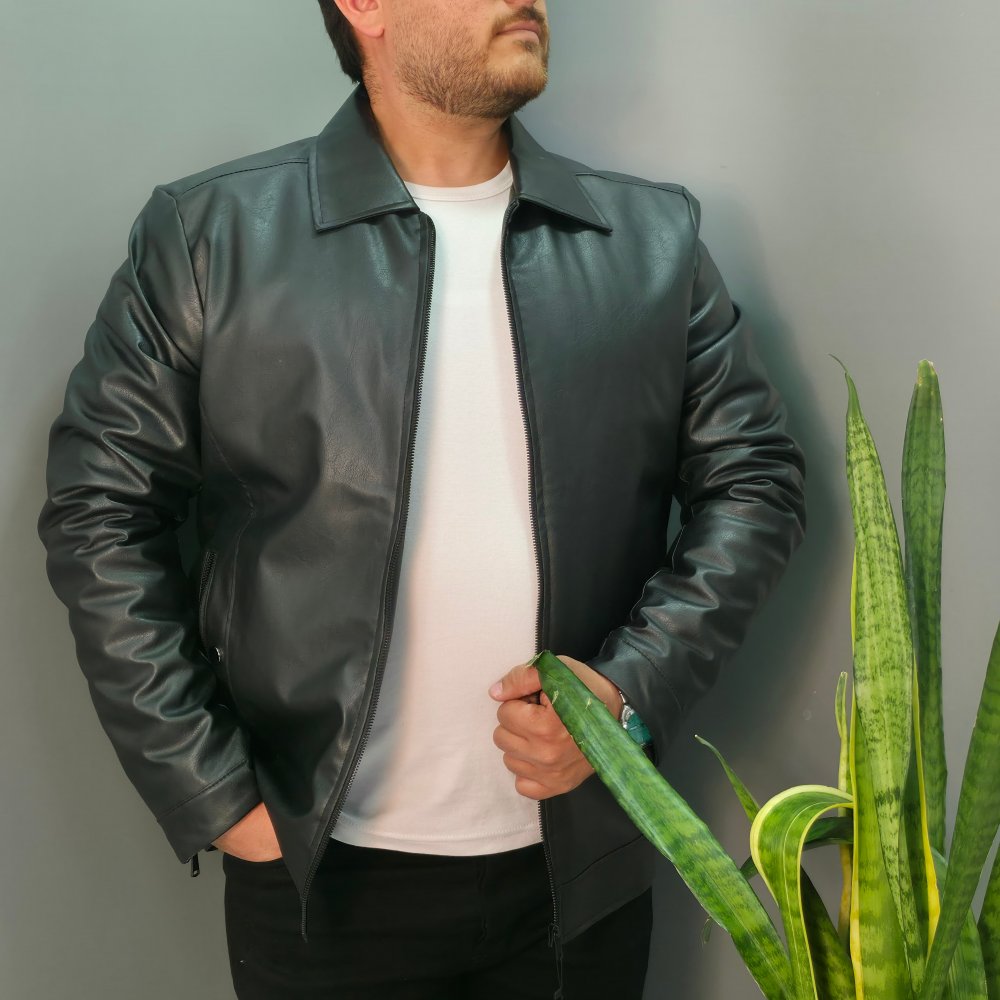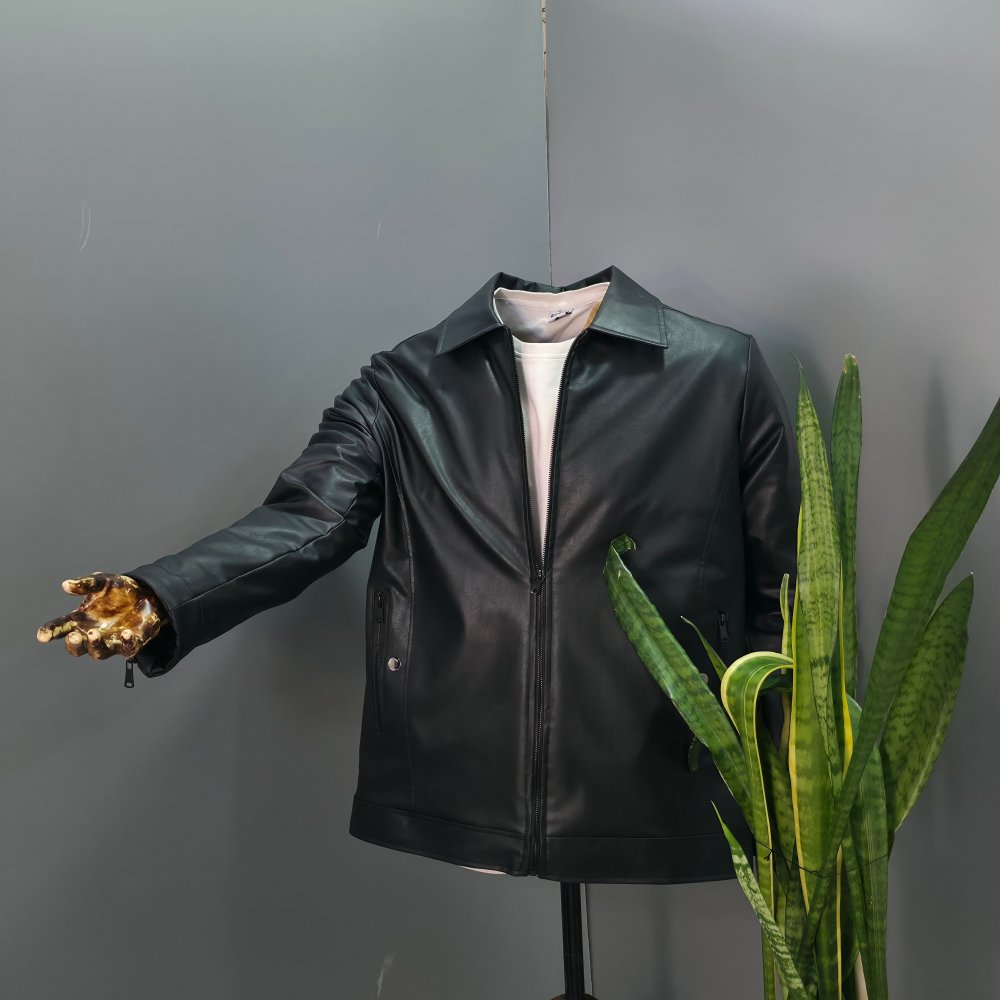 - کاپشن چرم مشکی مردانه طرح یقه شکاری مناسب زمستان (داخل پشم شیشه دار ) کد9990