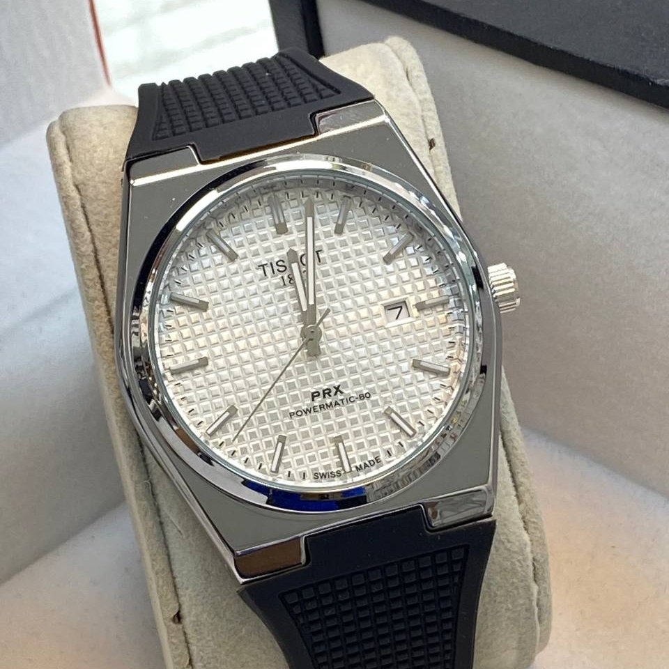 - ساعت مچی مردانه تیسوت TISSOT بند رابر PRX سورمه ایی کد 10106