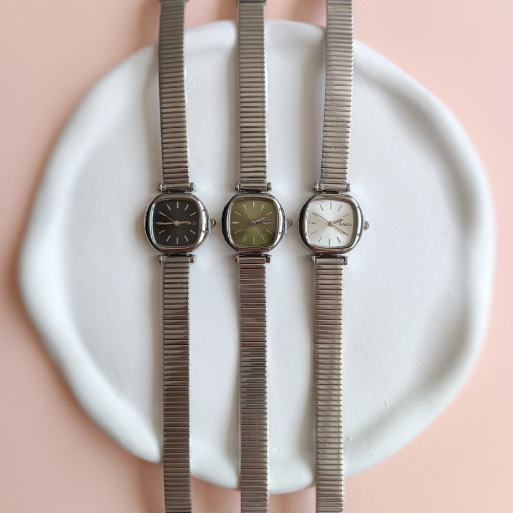 - ساعت مچی زنانه ودخترانه نایدو naidu بند استیل کرکره ایی ماری (ریلی) مربعی مینیمال بنفش کد 10117
