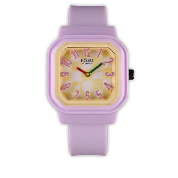 ساعت مچی دخترانه و پسرانه بند سیلیکونی (پیو) بنفش t3eller عداد برجسته جدید +باطری اضافی کد 10154