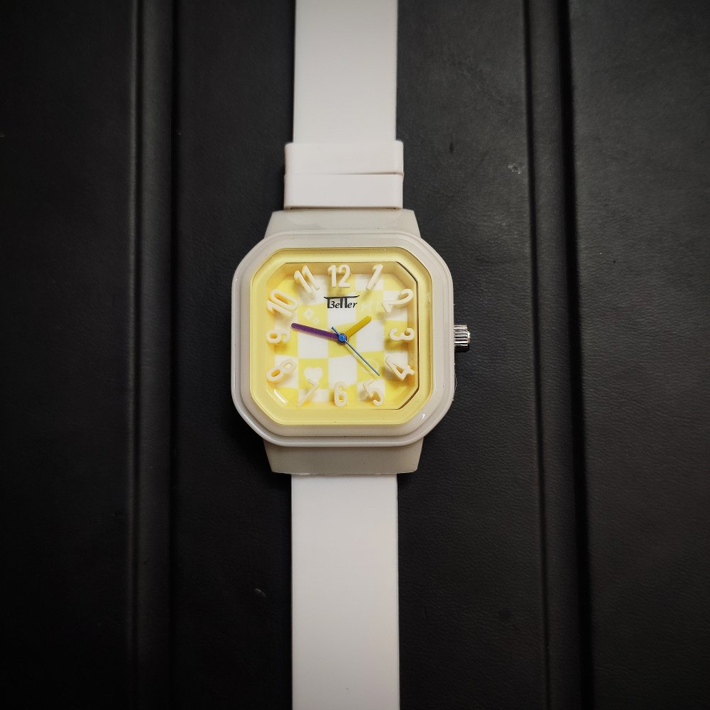 ساعت مچی دخترانه و پسرانه بند سیلیکونی (پیو) کرمی t3eller عداد برجسته جدید +باطری اضافی کد 10155