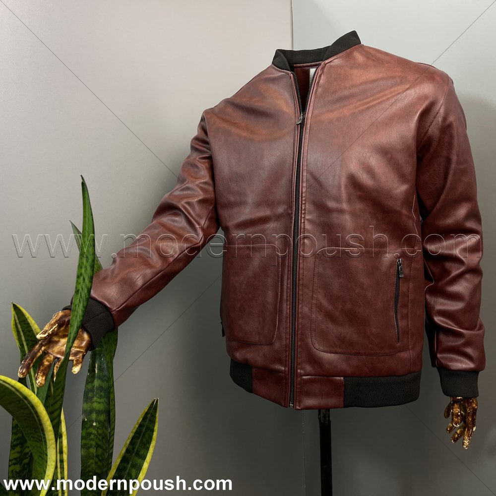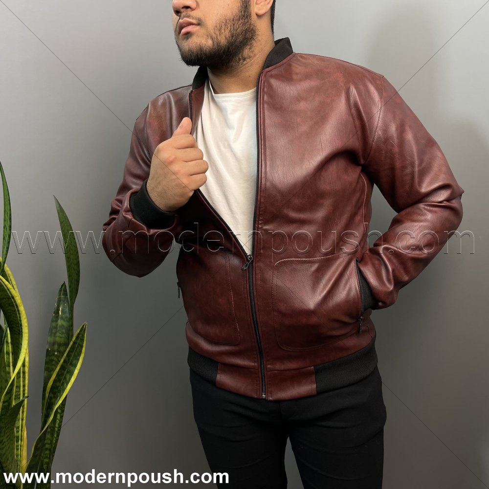 کاپشن زمستانه چرم بوفانو مردانه رنگ قهوه ای سوخته کد 1238