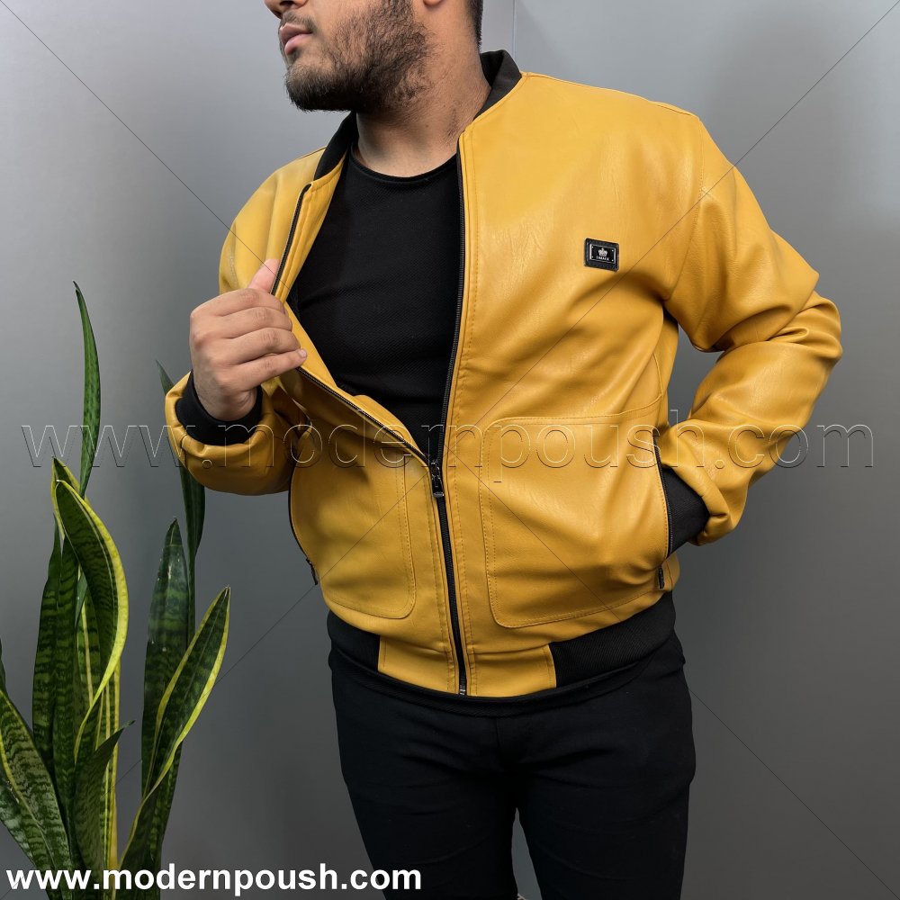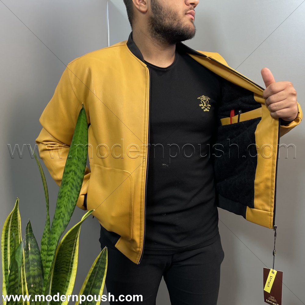 - کاپشن گرم زمستانه چرم بوفانو مردانه رنگ خردلی کد 1237
