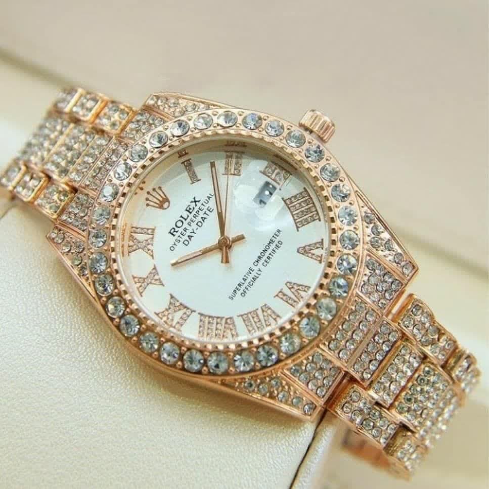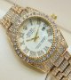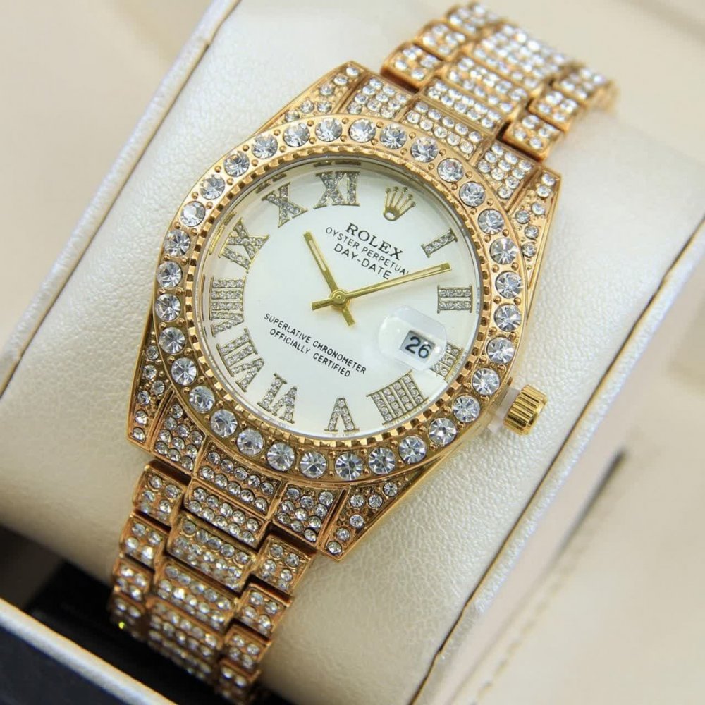- ساعت رولکس فول استون نگین دار بند طلایی صفحه نقره ای ROLEX کد1426