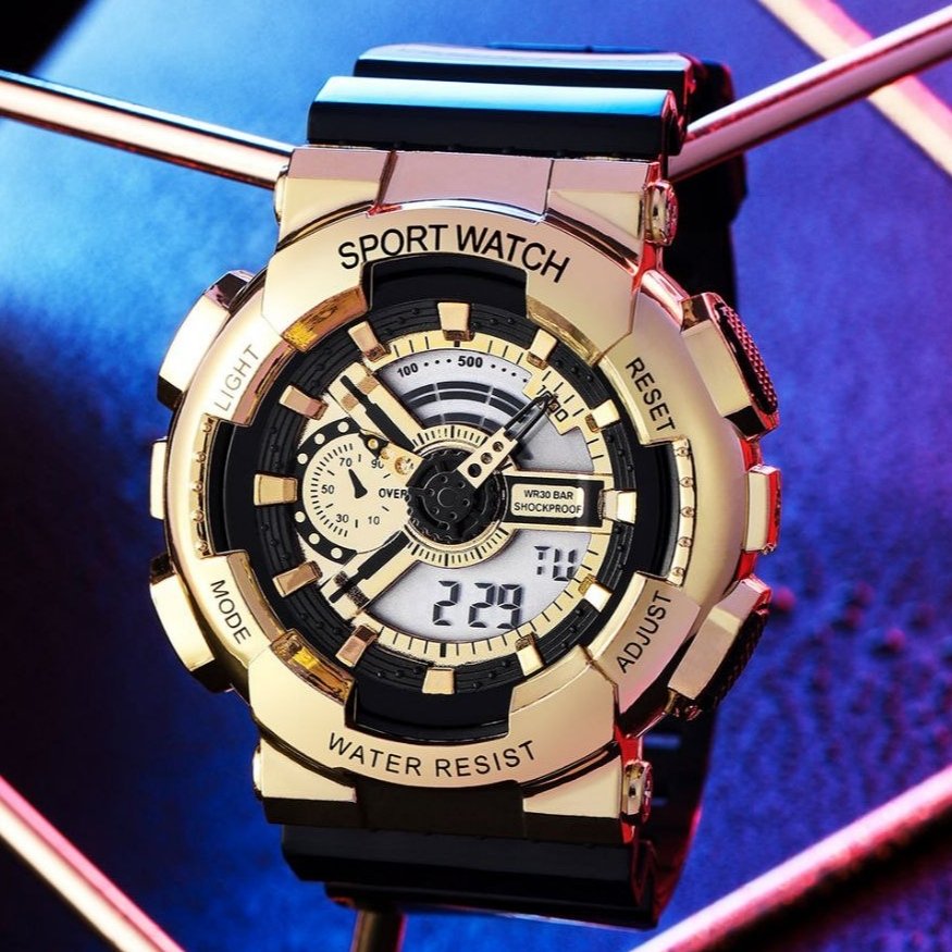- ساعت دبل تایم (دو زمانه) کرنومتر دار الارم دار طرح جی شاک کد +باطری اضافی 1461