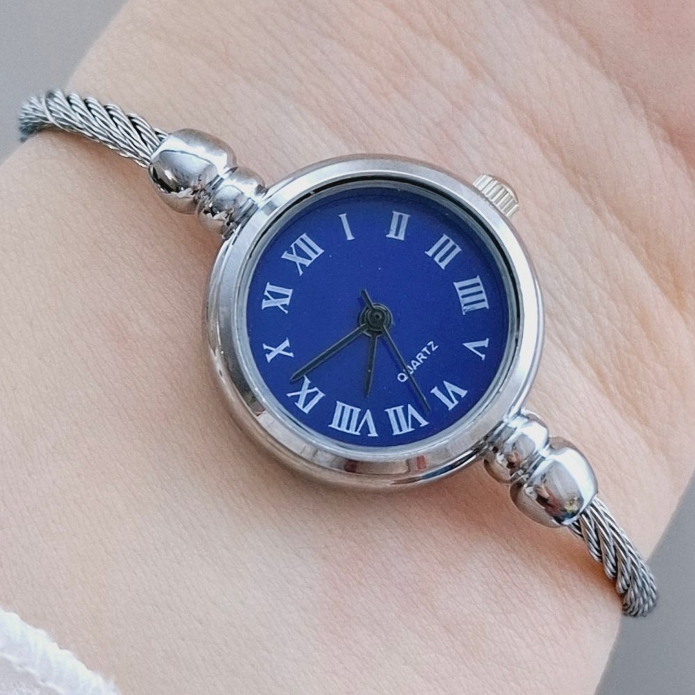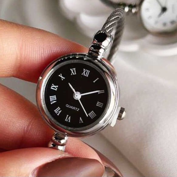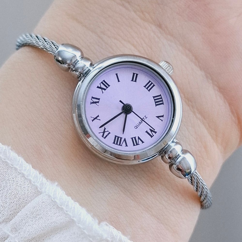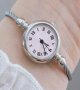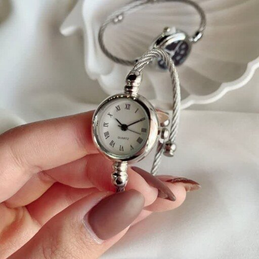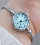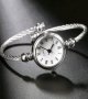 ساعت مچی زنانه طرح دستبندی النگویی بنگل نقره ایی صفحه گرد سفید کد 1468