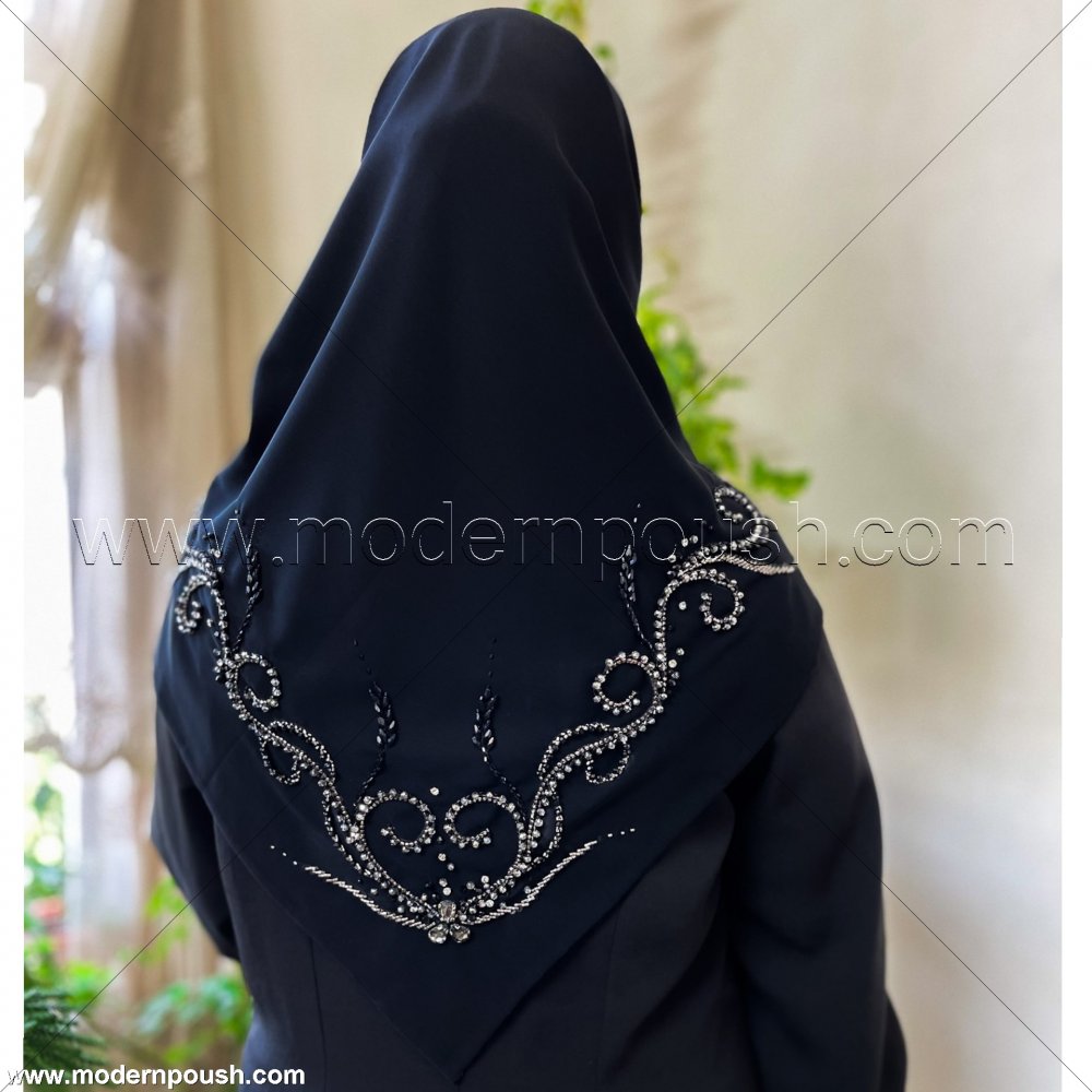 روسری مشکی طرح گندمی جواهردوزی شده ✅