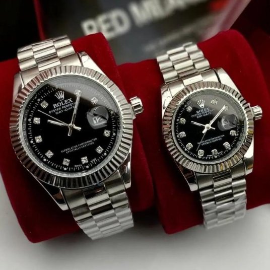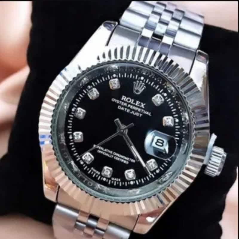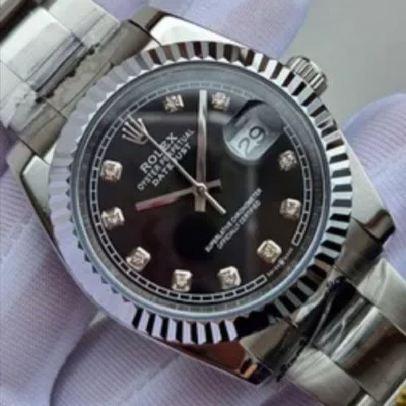 ساعت رولکس دیت جاست بند نقره ای صفحه مشکی+باطری اضافی کد1531