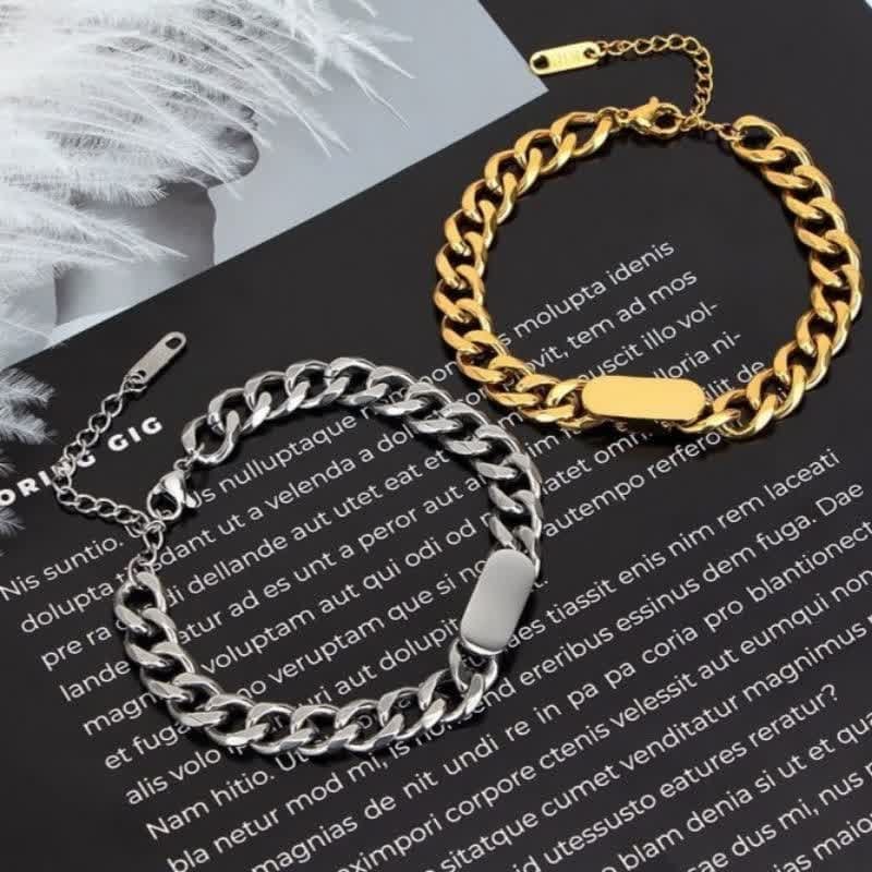 دستبند کارتیه زنجیره ای استیل طلایی کد 1548
