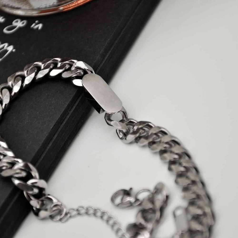 دستبند کارتیه زنجیره ای استیل نقره ای رنگ ثابت کد 1549