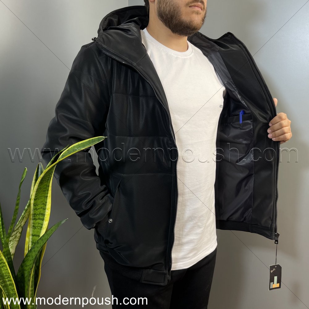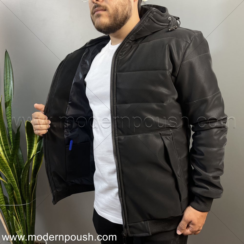 - کاپشن گرم زمستانه مشکی مردانه کلاه دار و داخل خز کد1590