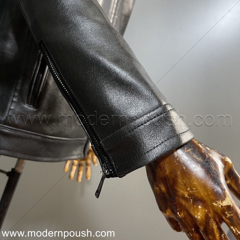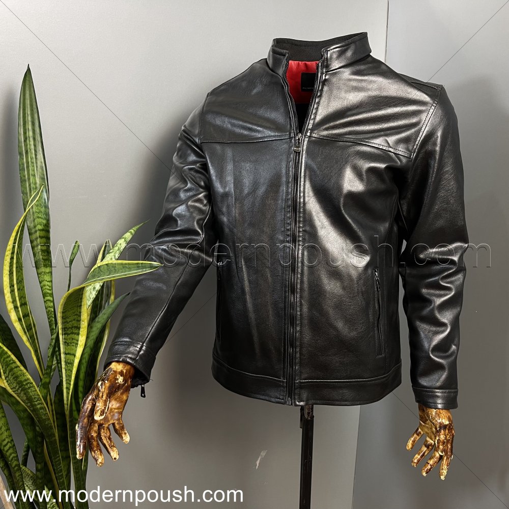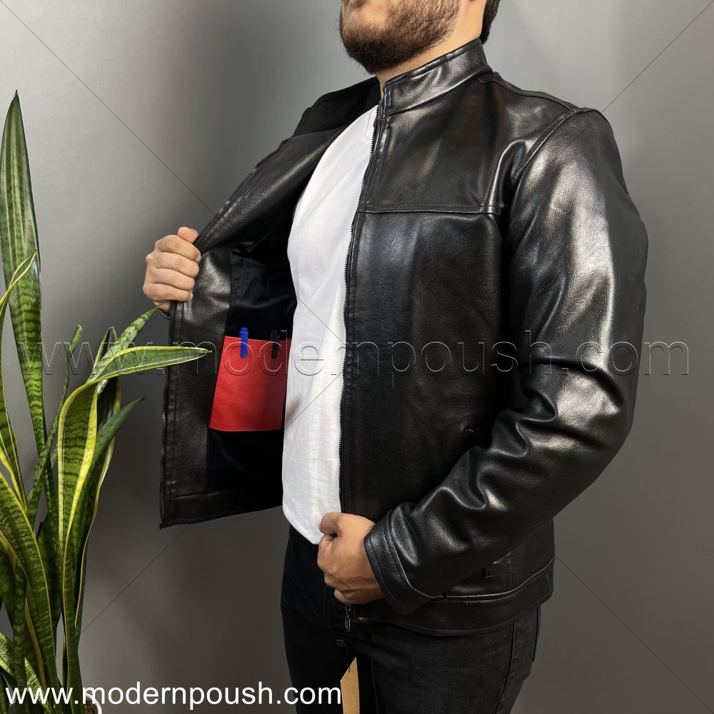 کاپشن چرم مشکی مردانه زمستانه واکس خور کد 1602