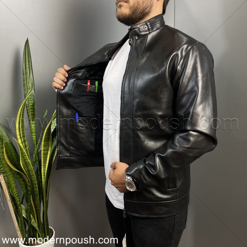 کاپشن چرم مشکی مردانه زمستانه واکس خور (به همراه واکس مخصوص) کد 1612