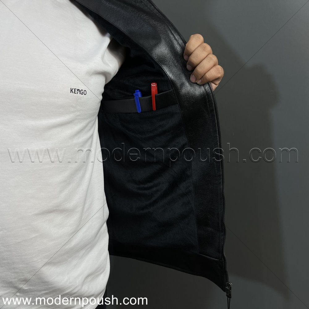 - کاپشن چرم مشکی مردانه زمستانه واکس خور (به همراه واکس مخصوص) کد 1612