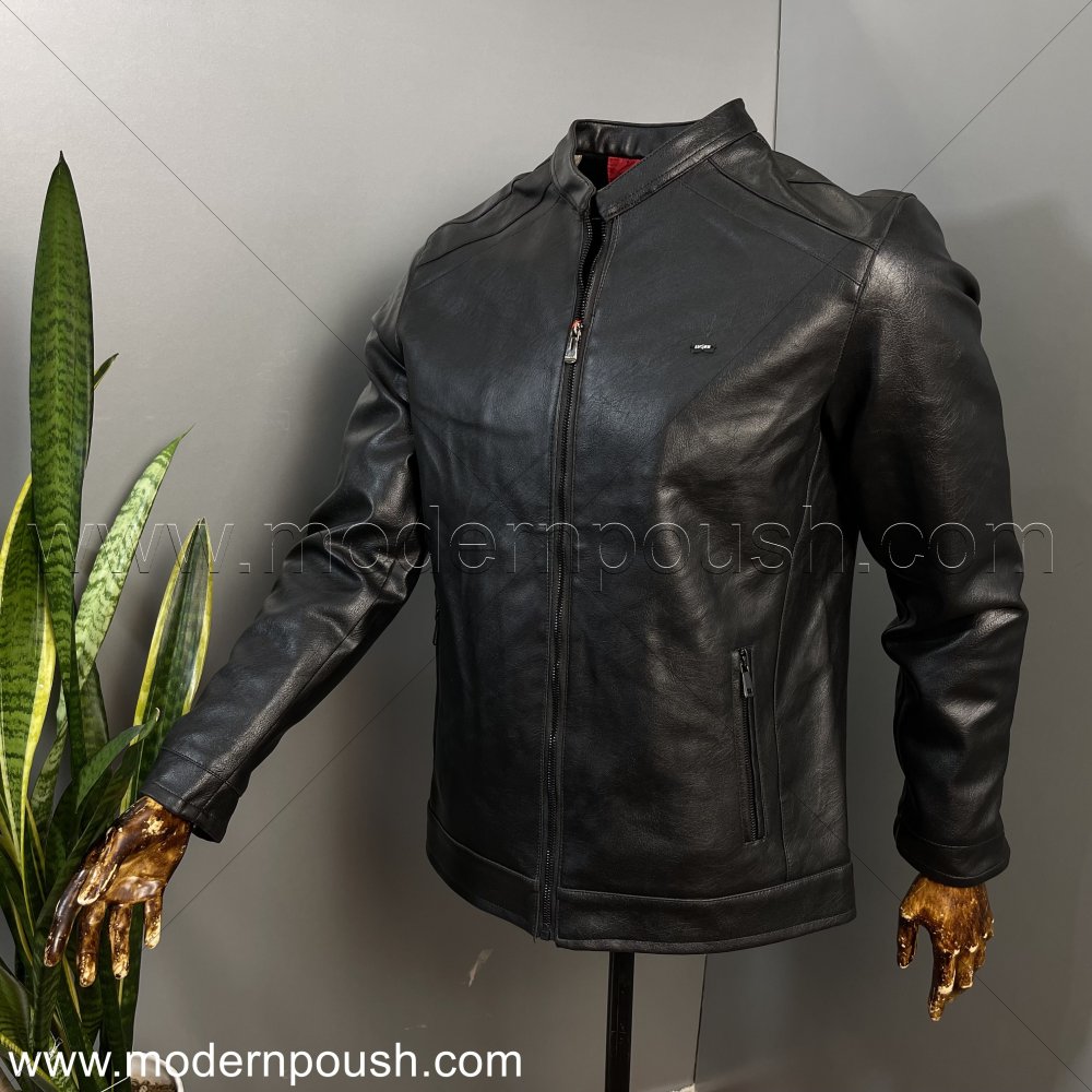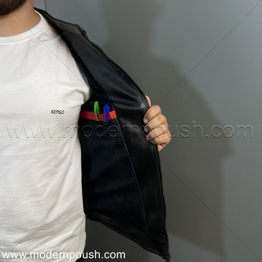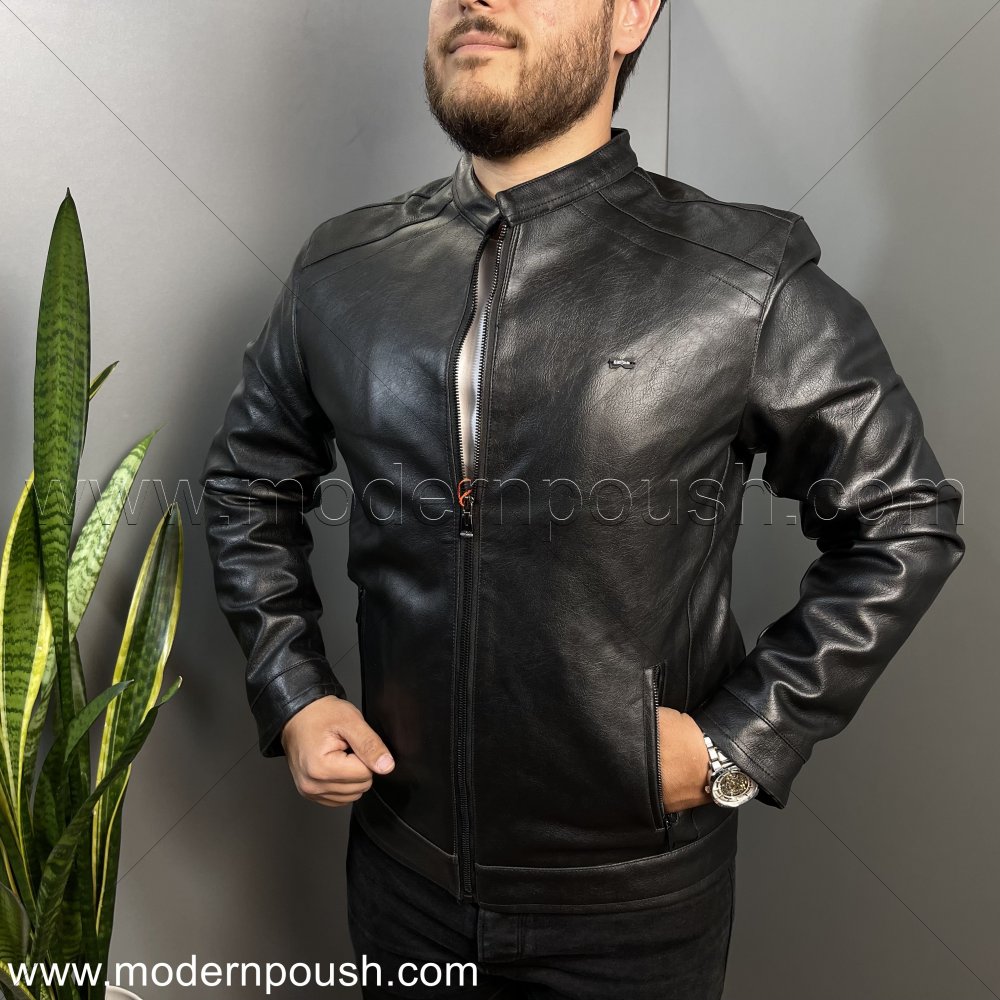 کاپشن چرم مشکی مردانه زمستانه واکس خور کد 1613
