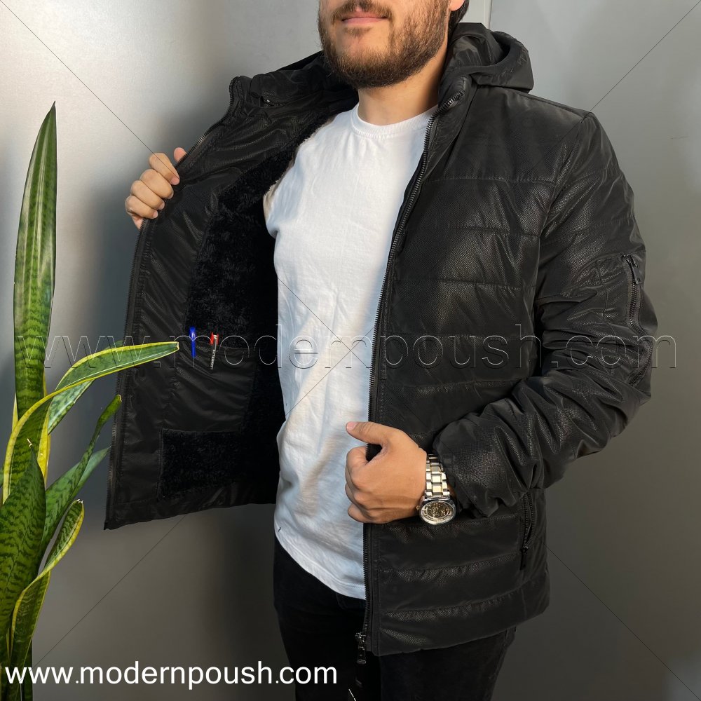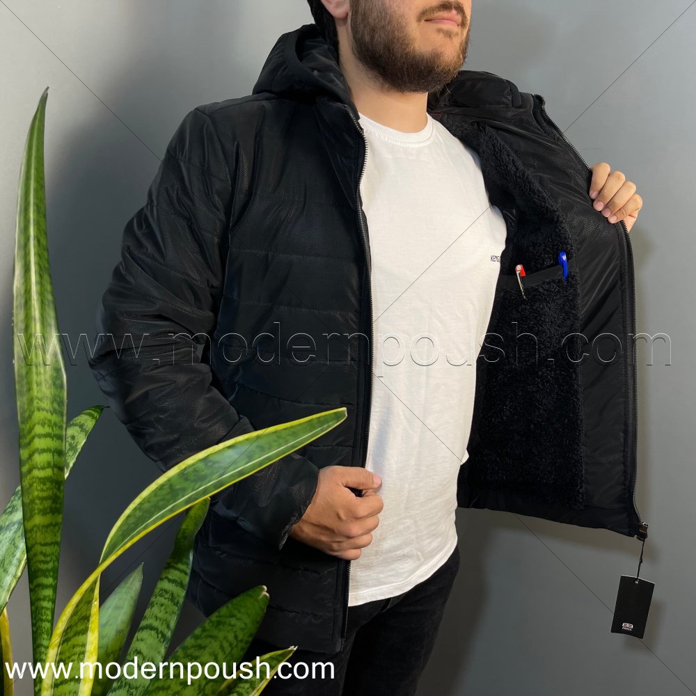 - کاپشن مشکی کلاه دارمردانه پشم شیشه دار زمستانه طرح جدید 3XL کد 1665