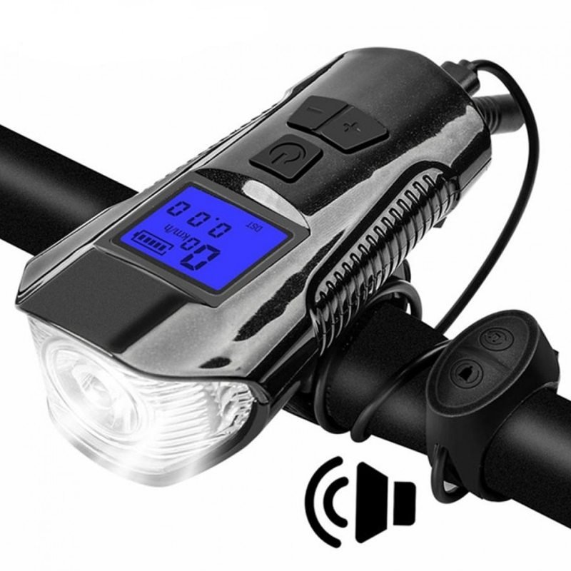 چراغ جلوی دوچرخه مدل FY317 کیلومتر دیجیتالی چراغ قوه دار بوق دار مدل چهارکاره کد 1905