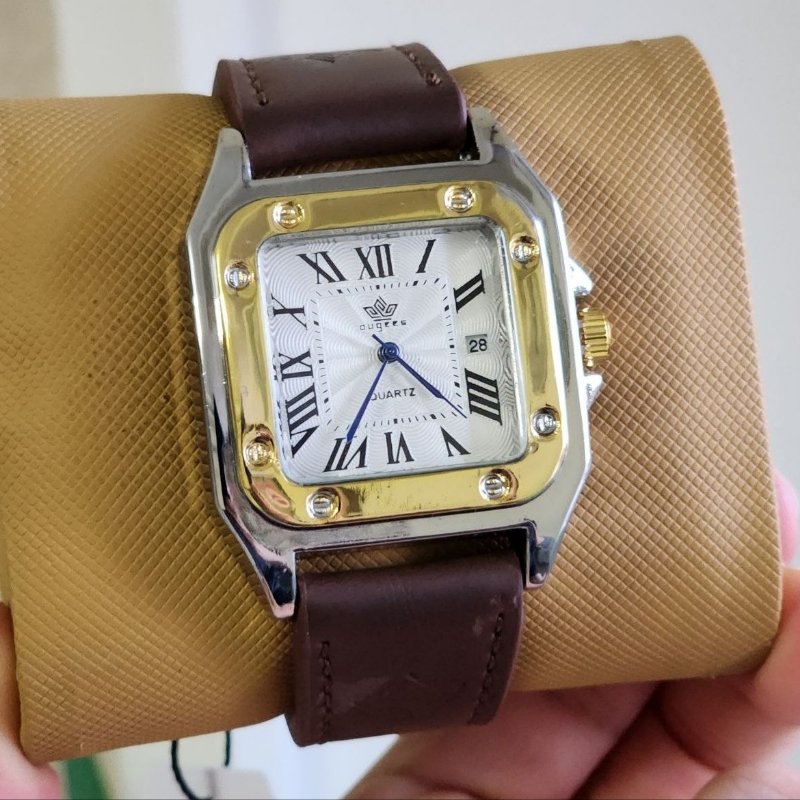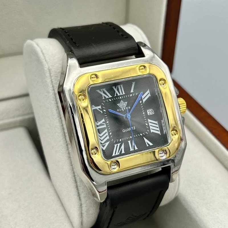 - ساعت مچی مردانه بند چرم صفحه مشکی OUGEES+باطری اضافی کد 1960