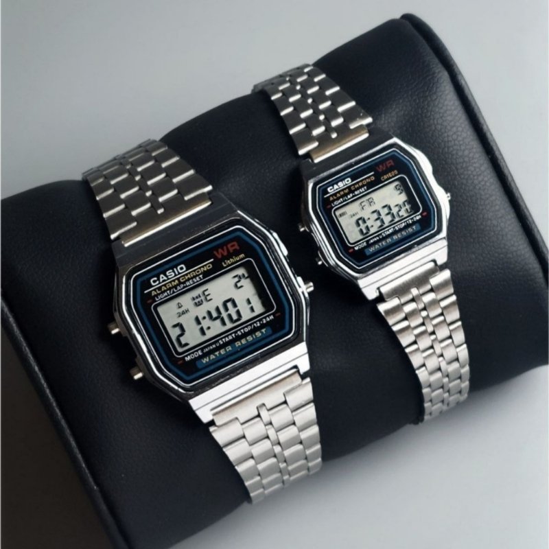 - ست ساعت مچی مردانه کاسیو دیجیتالی بند نقره ایی استیل CASIO کد1962